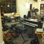 by Jonathan Saxon on January 8, 2013January 16, 2017 Setting up. Garth Powell Wayne Peet Setting up the Wayne Peet’s mobile rig. Stuart Liebig’s pedal boards. Sound check/set-up for a live recording with Apophenia and the Michael Vlatkovich Quartet.